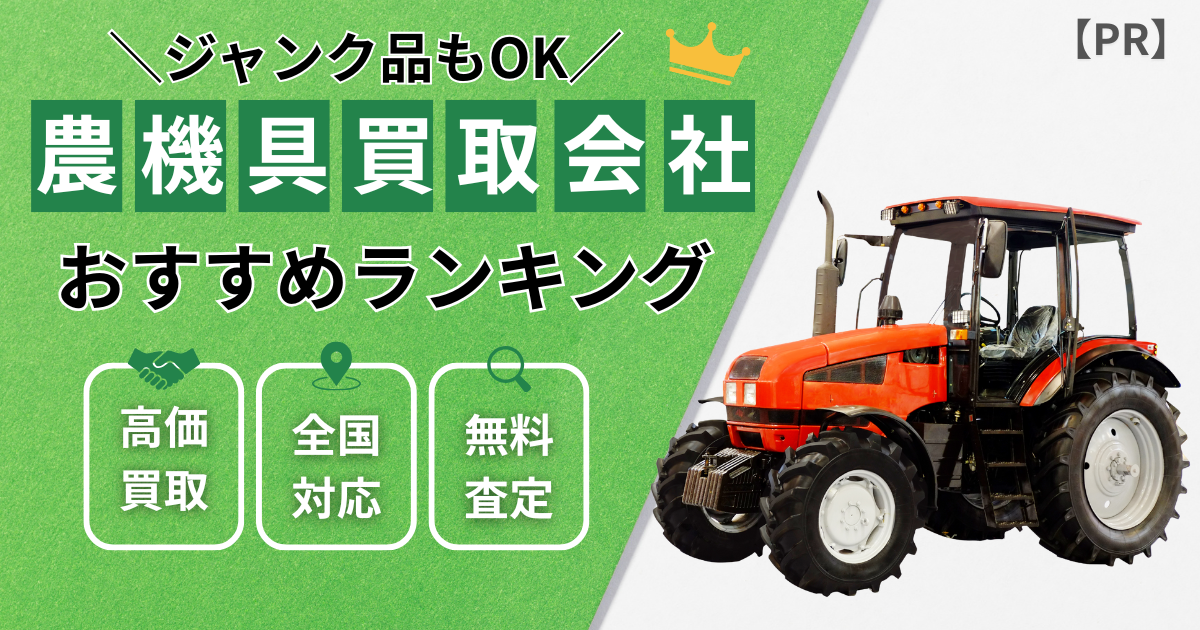 トラクター、コンバイン、田植え機、耕うん機、運搬車など、さまざまな農機具が対象です。中には除雪機や発電機なども対応可能な業者がありますので、まずは一括査定でご確認ください。